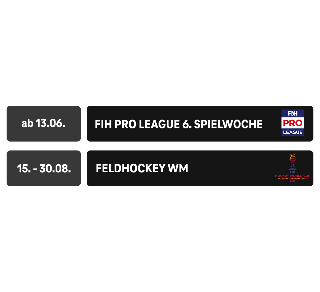 Im Jahr 2026 erwartet dich die Rückrunde der Frauen-Bundesliga und der 3. Liga, FIH Pro League, DEL-Playoffs, EuroCup und EuroLeague Playoffs und das Final Four sowie die FIBA Damen Basketball Heim-WM und vieles mehr!